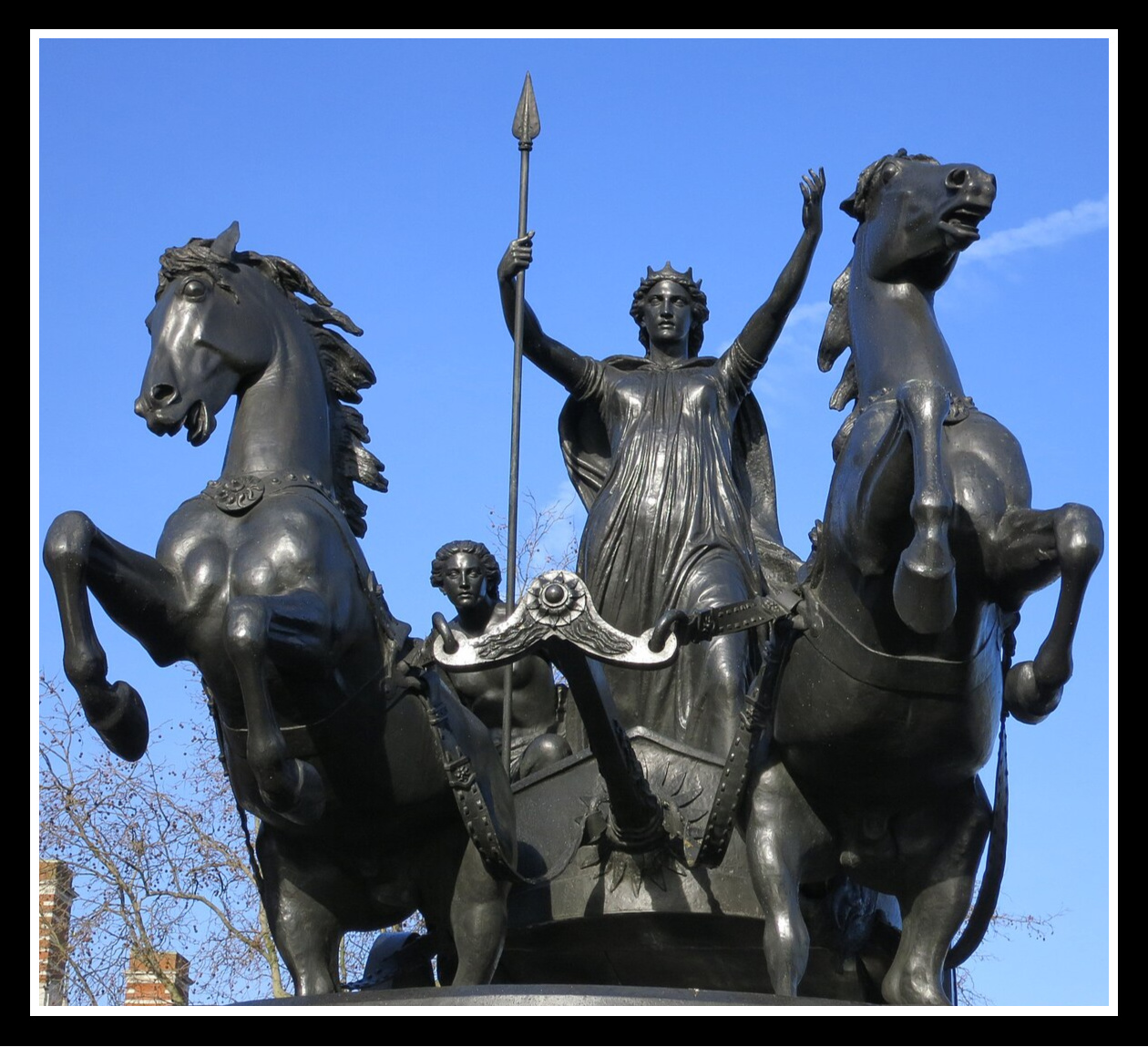 “Boadicea and her daughters” statue in Westminster, facing Big Ben. Bronze statue created by Thomas Thornycroft, finished in 1883, installed in 1902